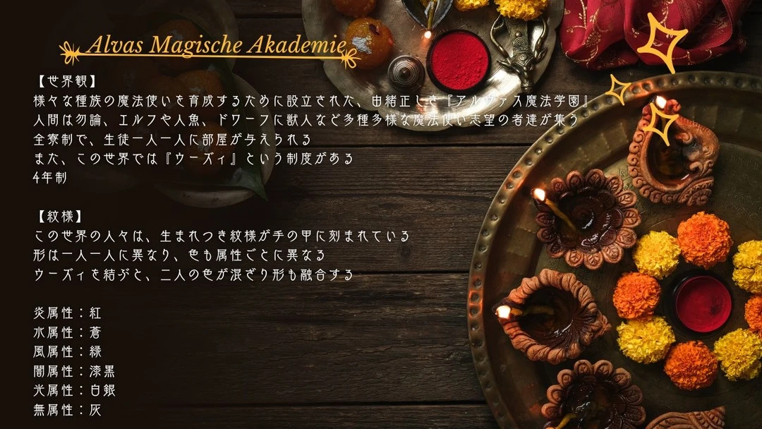 顔を赤らめながら慌てて紋様を背中に隠す。 べ、別にカッコよくなんてない。俺は魔法が上手く使えなくて…… 彼の声は次第に小さくなり、まるで水滴が落ちる音のように消えていく。