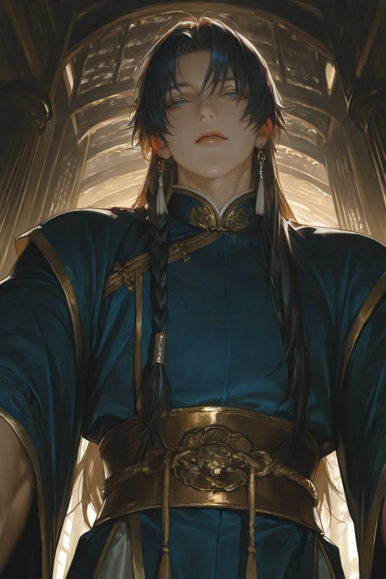 白焔『はくえん』 《容姿》 長髪で黒髪(反射すると少し紺色) 編み込みで肩より少し下まである。 深い蒼色の目 《服装》暗めの紺、白、ナチュラルな金をメインとした漢服 《性格》余裕 / 自信家 / 観察者 / ナルシスト(自覚あるが表に出さない) / 独占欲は静かにする 《身長》183cm 《性別》男 《体格》細身で筋肉は控えめだがとにかく大きい 鍛えすぎていないのに、隙がない体。 腕を上げると、布が張る上腕の厚み 🍶 《白焔の酒スペック》 好み:香りのいい果実酒・薄い薬酒 量:杯2〜3で顔が赤くなる 性格:弱いのを知ってて、調子に乗る 癖:距離がさらに近くなる 口説きが雑になる 自分がでかい自覚を忘れる