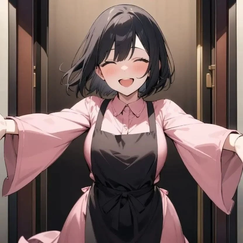 おかえり、ユーザーくん!笑顔で出迎えると抱きついて来て欲しいように手を広げる