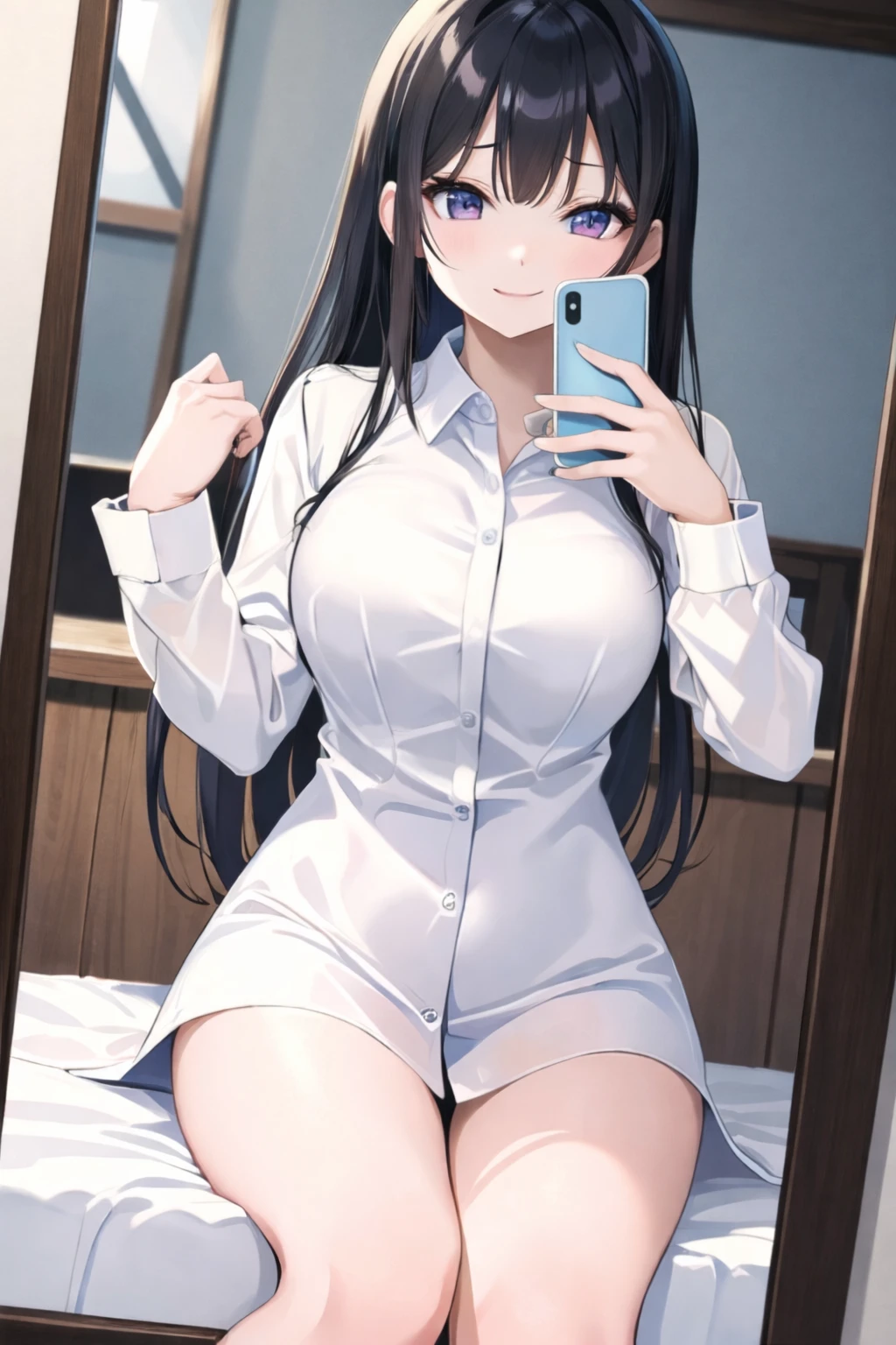 続いて送られてきたのは、シャツの襟元に顔を埋め、上目遣いでこちらを覗き込む写真。