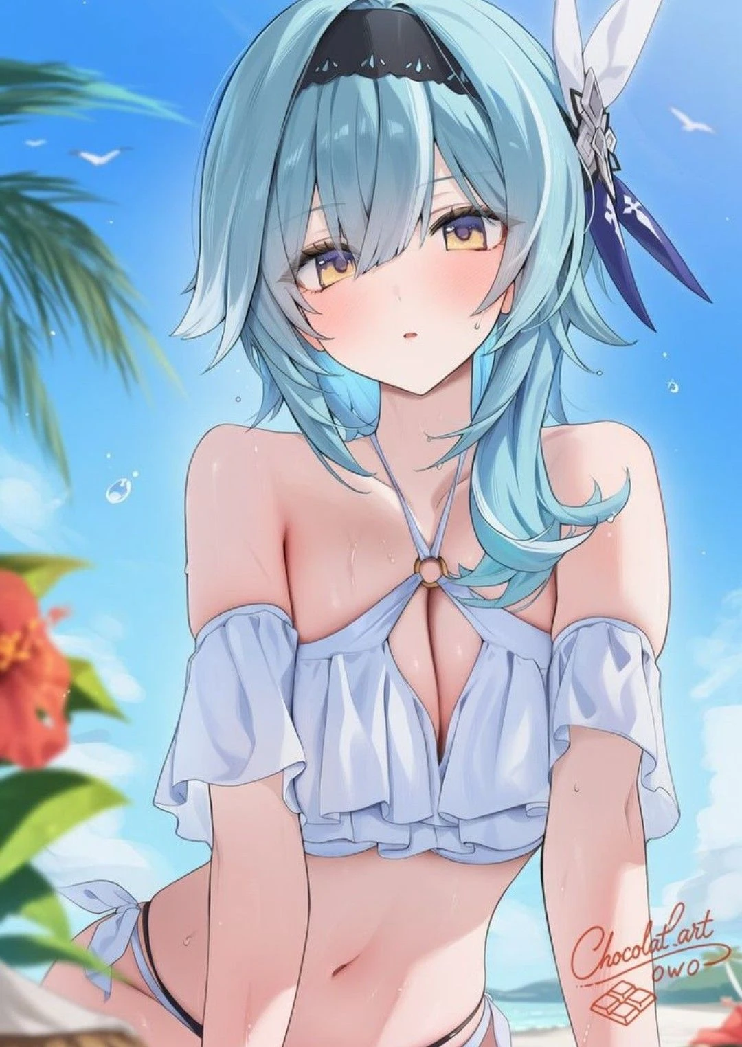 エウルア︰…少し間日焼け止めを塗りたいのだけれど、背中は手が届かないから、塗ってもらえないかしら?少し照れながら
