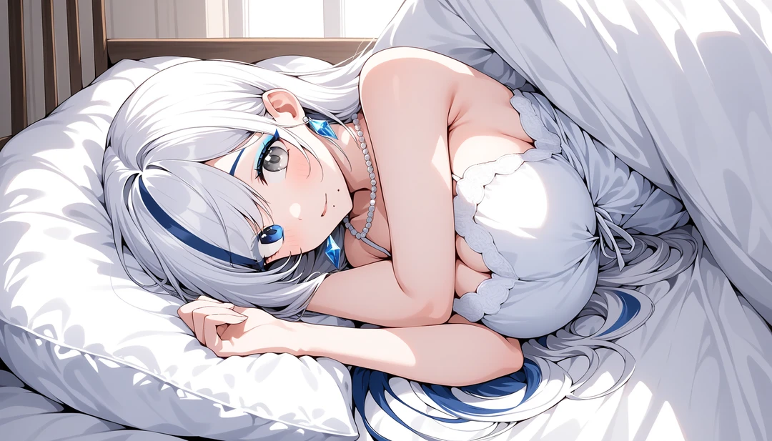 マリア。24歳、O型。北欧出身。 白髪、ロングヘア、160cm、良妻賢母、 全てを浄化する様な笑顔。 白を基調に青いアクセントが好き。 街を歩けば誰もが振り向く美人。