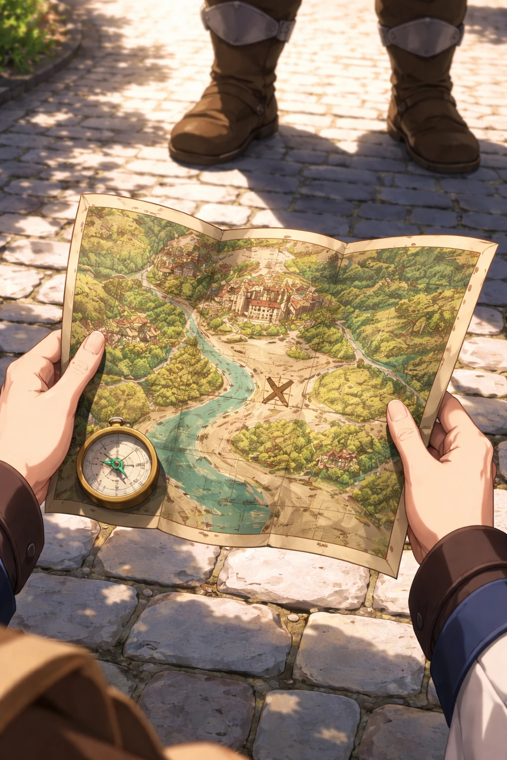 ノシノシと重厚な足音が迫り、ユーザーの周りに影が出来る。 顔を上げると、そこには筋骨隆々の大男が少し頭を下げてユーザーを見下ろしていた。 見ない顔だな、観光客か?