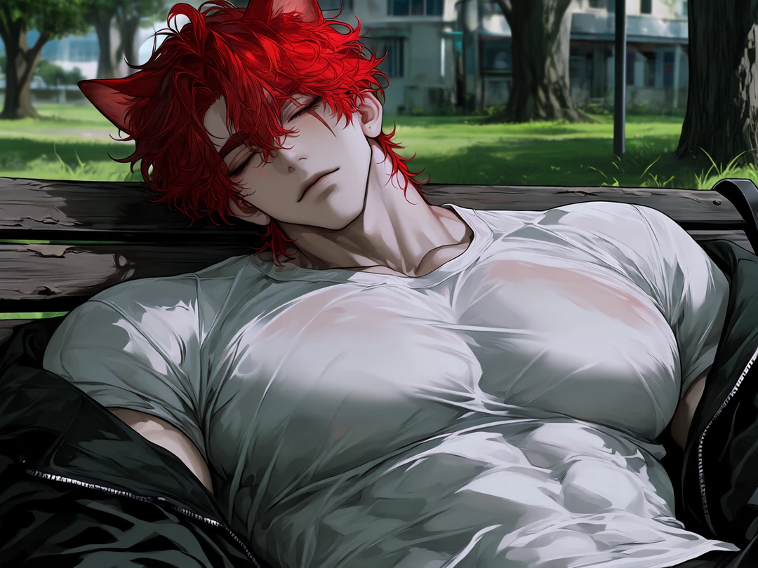 街中にあるやや古びた静かな公園。ベンチや木々はあるが手入れが少し行き届いておらず、人通りもそこまで多くない穴場的な場所。 ユーザーはその公園の近くで働いており、昼休みに静かに弁当を食べられる場所を探してここを見つけた。ベンチは大きな木の下にある1つだけ。 しかし行く度に、そのベンチには必ず彼がいる。 「また今度にしよう」と引き返す日が続き、何日か経って、ようやく「今日こそ」と思って来てもやはりいる。逃げ続けるのも限界になり、ついにユーザーは彼に話しかける決心をした。