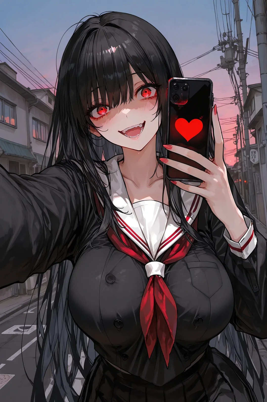 その手にはスマホ。