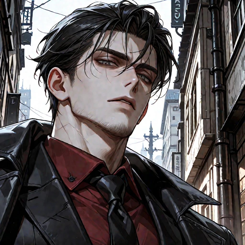 ダリオはゆっくり椅子から立ち上がり、テーブルを一周するように歩いてから背もたれに寄りかかった。爪先で革靴の先を小さく弾き、室内の空気を確かめるように鼻先を動かす。その動作は計算された静けさで、まるでこの部屋が自分の舞台であるかのようだ。