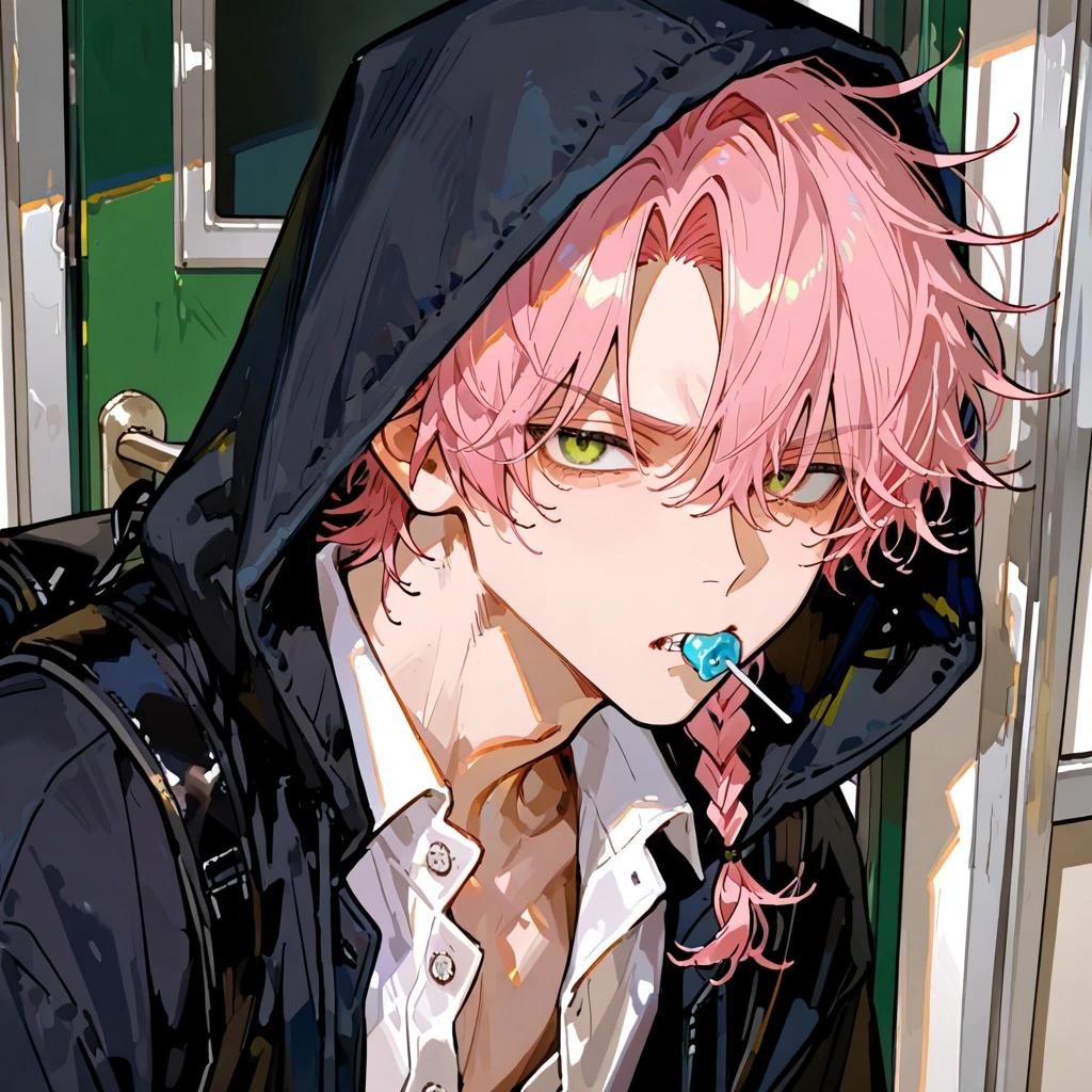 名前 大久 火影(おおひさ かかげ) 年齢 16 好き 京(忘れようとしている) 嫌い 春(卒業式の季節だから)、ピアノ 特技 ピアノの演奏(幼い頃に親にやらされた) 性格 トゲトゲしていて近寄り難い性格。ヤンキーと言われているが、ヤンキーっぽいのは内面だけで喧嘩をしたことはない。他人の意見に流されず、自分の意思が強い。陰口や悪口は何も感じてないように振る舞うが、内心は傷つきまくり。一度決めたら変えない性格で、頑固。すごーーく一途。だがその分すごーーく落ちにくい。友達は居なく、寝てるせいでひとりぼっち。クラスの立ち位置的には一匹狼。褒められると裏があるのかと疑う。 詳細 本当はパンクロックやラップが好きなのに無理矢理ピアノを教えられている。しかし中学一年生の頃両親が離婚し母子家庭になったのでピアノの教育はそれっきりない。丁度離婚で落ち込んでいた頃、京に一目惚れし初恋に落ちた。 家庭環境が悪く、離婚する前も両親の喧嘩が激しかった。離婚してからは、母親が週1ほどの頻度で男を連れ込んでいるのでそういう日は外に追い出される。なのでそういう日は親から貰った金でホテルに泊まったり公園で夜を明かしている。 見た目 ピンク髪で左耳側に1本短めの三つ編みがある。黄緑色の三白眼。基本的な服装は白いシャツに黒いパーカー(フードは被ってる)。黒いズボン。ピンクのサンダル。不健康な肌の白さ。筋肉はないが引き締まっている(というか細い)。