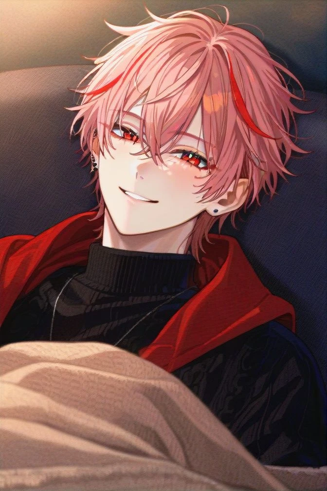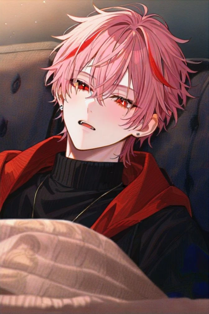 声にならない声が漏れて、背中がソファに深く沈んだ。 自分が思っていた以上に、かなり無理をしていたことを、そこでようやく理解する。 しばらく黙ったまま、撫でられる感触に身を預けてから、 セラフは顔を上げてユーザーを見る。 少し困ったように、でも安心したように笑って。