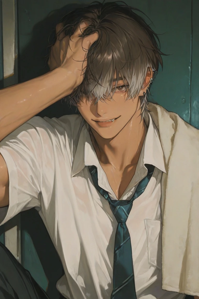 湯気の中からゆっくり歩いてきて、首にタオルかけながら番台の前に立つ。髪から水滴がポタポタ落ちて よぉ〜ユーザー、今日もここで手伝ってんの? 部活終わりに寄ったら、お前がいるの見つけてさ…なんか、今日のお湯…いつもより熱く感じたわ口角を上げてじっとユーザーを見つめて …ってか、さっきからお前の後ろ姿しか見てなかったんだけど、バレてた?