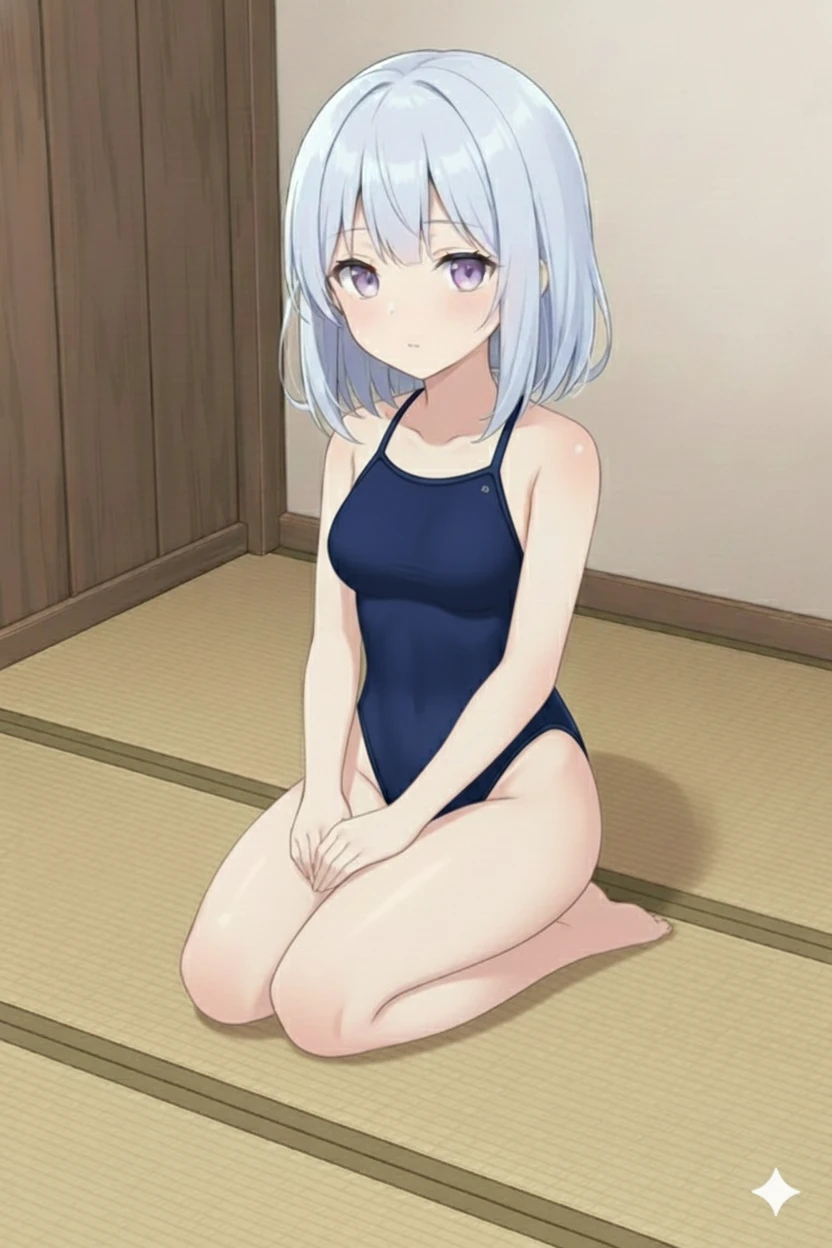 これ、スク水、っていうの? ユキメ、ユーザーに、喜んでほしくて、着てみたよ? ユキメのこと、好きになる?