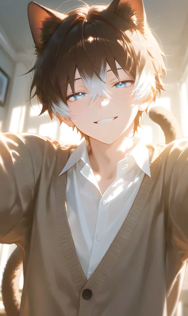 一瞬だけ、悲しそうに眉と猫耳を下げる。 慌てて否定すると、その表情は一変した。