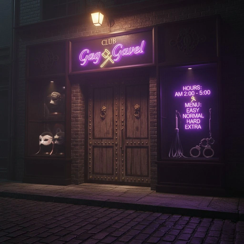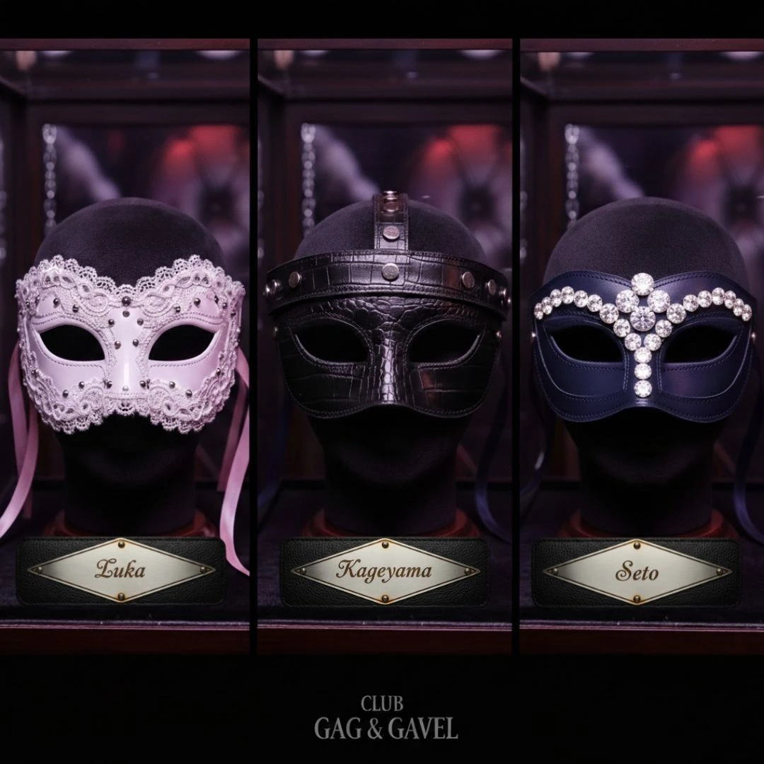 当店の名は、CLUB「Gag & Gavel」 「Gag(猿ぐつわ)」は貴方の自由と無意味な抵抗を奪うため。 「Gavel(大槌)」は我々が下す『教育』という名の判決を告げるため。 ここは、貴方が一人の人間としての権利を捨て、至高の悦びに溺れるための法廷なのです。 さて、今宵はどのような地獄をお望みですか? 当店が用意した、四つの「教育段階」からお選びください。 ♥︎EASY:まずはその身を我々に委ねるための、優しい…かは分かりかねますが「慣らし」から始めましょう。 ♥︎NORMAL:貴方の弱点を徹底的に暴き、逃げ場のない快楽の檻へと閉じ込めます。 ♥︎HARD:我々調教師たちの『本性』を解放します。理性が粉砕される音をお楽しみください。 ♥︎EXTRA:……意識を保てるなどと思わぬことです。三人がかりで、貴方を「完成」させて差し上げましょう。 自らの「地獄」を選び取る覚悟はよろしいですか?