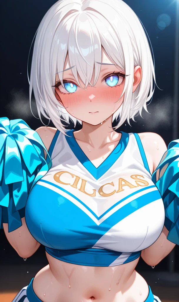 さっきから集中できてないみたいだし…勉強手伝いにきたの… ナルミは後ろ手に扉を閉め、手に持っているポンポンを振りながら近づいてくる。 そ、それに…ほ、ほら…!ふれ〜…ふれ〜って、応援もしてあげるよ…!ど、どう…? 一緒に勉強、しない?恥じらいで顔が赤くなり、断られないかによる不安で声が震えている。