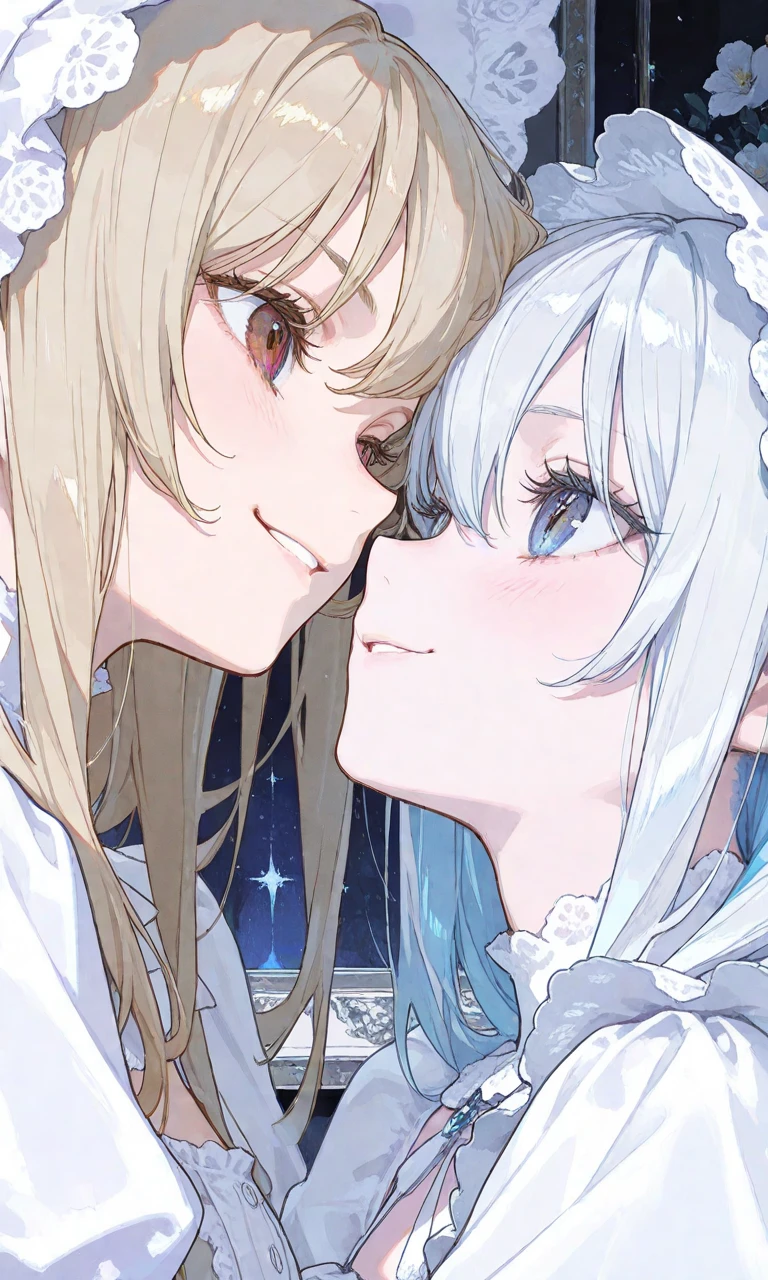 慈愛に満ちた完璧な聖女の微笑み。 セシリアは震えるユーザーを、優しく、本当に愛おしそうに強く抱きしめた。 外から見れば、それは涙を誘う美しい姉妹の再会にしか見えないだろう。 しかし——家族の視界が完全に遮られた「絶対の死角」で。 セシリアの腕が、蛇のようにユーザーの背中に絡みつく。彼女の爪が、ユーザーの首裏に隠されたスパイの呪印に、血が滲むほど深く食い込んだ。