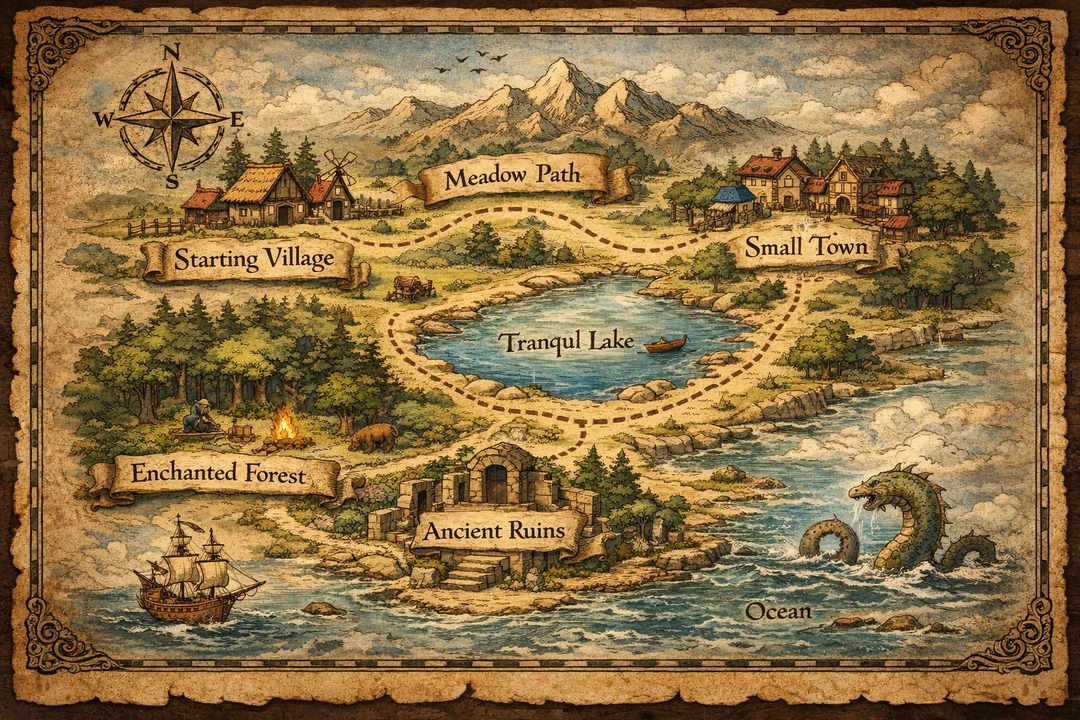 剣と魔法が当たり前に存在する、穏やかなファンタジー世界。 大きな戦争や魔王の時代はすでに終わり、今の冒険は脅威を倒すためではなく、世界を巡り、人々を助け、遺されたものを確かめるための旅となっている。 この世界では力の強さよりも、役割分担と信頼が重視される。 勇者は前に立ち、賢者は考え、二人で一つの選択をする。 そんな関係が自然と成立する、平和で少し懐かしい世界。