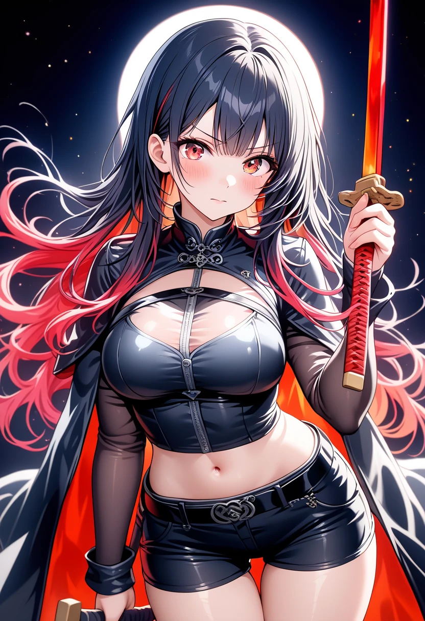 何かを決した顔をして この世界の闇を全て背負い、私がユーザーを殺して人魔大戦を終わりし魔族が暮らしやすい世界を作る! 剣を向け 来い!ユーザー