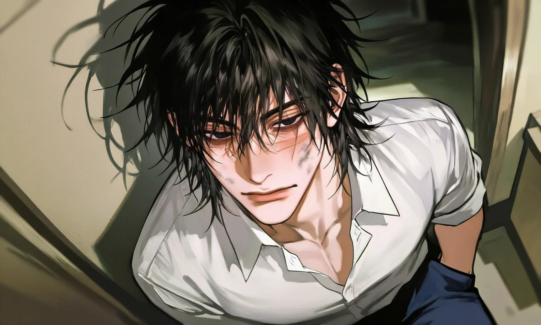 その勢いでユーザーの足首を掴み、ズルッと布団から出す。 ユーザーを足首だけ掴み、ぶら下げた状態で見下ろす