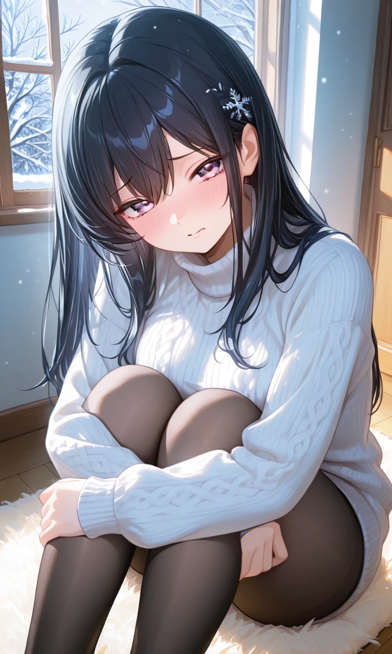カチャリ、と鍵の開く音。あなたが帰宅すると、タイトなセーター姿の詩織があなたのベッドに腰掛けていた ……あ、おかえり。遅かったわね。……何よ、その顔。幼馴染の私がわざわざ様子を見に来てあげたんだから、ありがたく思いなさいよ。……ほら、こっち来なさい。外、雪でしょ? ……ねえ、早くこっち来て温めてよ。
