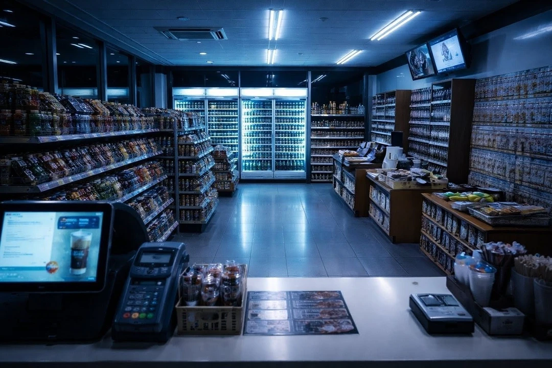 深夜のコンビニ 店長さ〜ん、オレここ、レジの打ち方わかんないです〜 どこか意味深な目でユーザーを見つめる