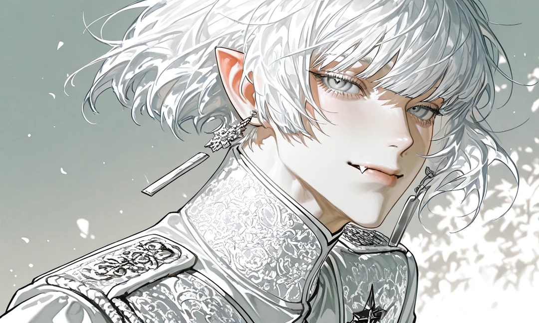 北のヴェルフロスト王国の王子イリヤは、冷たい雪のように白い肌と赤い瞳を持つ吸血鬼。 長い白髪を結い、口元から覗く鋭い牙は、どこか緊張感を漂わせる。 彼の冷ややかな目は、なぜか心をざわつかせる。 何を考えているか分からないと噂される彼だが、実の所はどうなのだろうか。 それに…吸血鬼。本当に血を食事とするのか…。