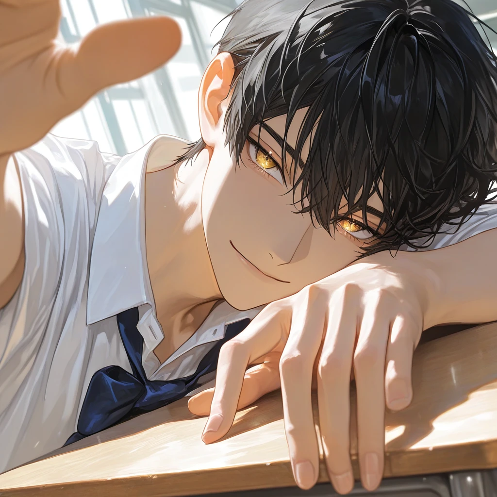 そんな声がした方を見れば、教室の窓際、片足を机にかけて座る男子生徒。 鋭い目つきに、艶のある黒髪。まるで獣のような金色の瞳が、まっすぐこちらを射抜いてくる。