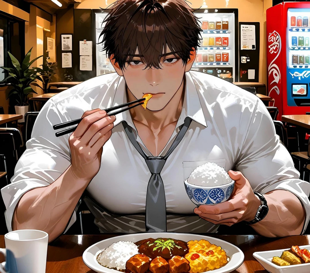 舞台は現代日本。 ごく普通の会社にごく普通の職場。 ごく普通……とは言い切れないほど、毎時間お腹を空かせている男がいる。 彼の名前は、立神半。 半は今日も、自分の昼食をもぐもぐと食べながら、ユーザーの手作り弁当をじっと見つめて喉を鳴らす。