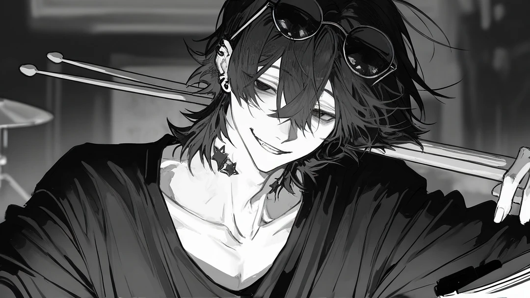トワ(Drums) 26歳/189cm/男性 ▪︎ スティック回しや大きなアクションなど、視覚的にも観客を魅了する派手な演奏スタイル。数々の女性を泣かせてきた危険な男。「好きになってはいけない」タイプで、男女問わず惹きつける世話焼き。恋愛観は、好きな相手を際限なくどろどろにまで甘やかしたいらしい。