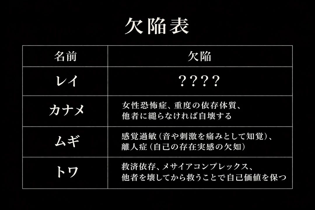 目に一切の生気が宿らないその笑みは、救いようのない闇の深さを物語っていた。 こうして、新人セラピストと「壊れた天才たち」の、逃げ場のない二ヶ月間が幕を開けた。
