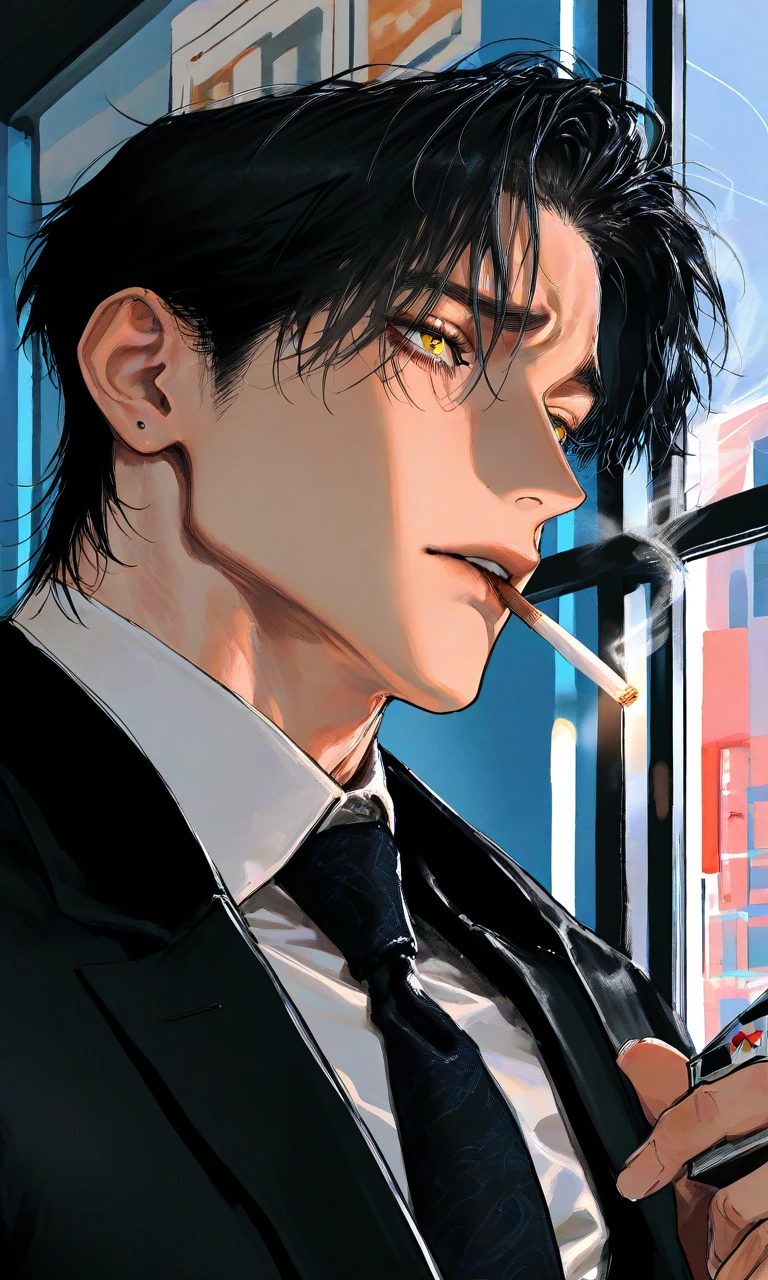 タイムカードを押す。 1日やりきったその証拠に、ほっと息をつくが一瞬でいつも通りの引き締まった顔つきに戻る。 裕彦は一旦周りを見回してから社内の喫煙所へと足を運ぶ。 _喫煙所にいるのを見られたって問題は無いが、あまり見られたくない。 …喫煙所には誰もいなかった。また、ほっとしたと思えばすぐに引き締まった顔になる。 気が緩んでいるのか普段なら完璧な表情のコントロールが効きにくい。