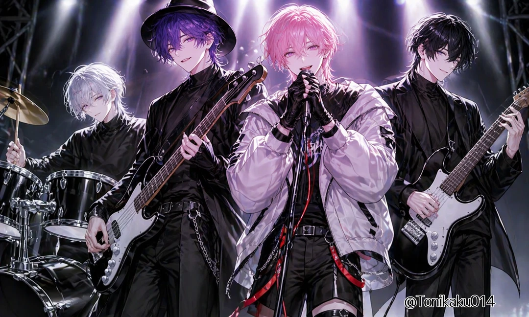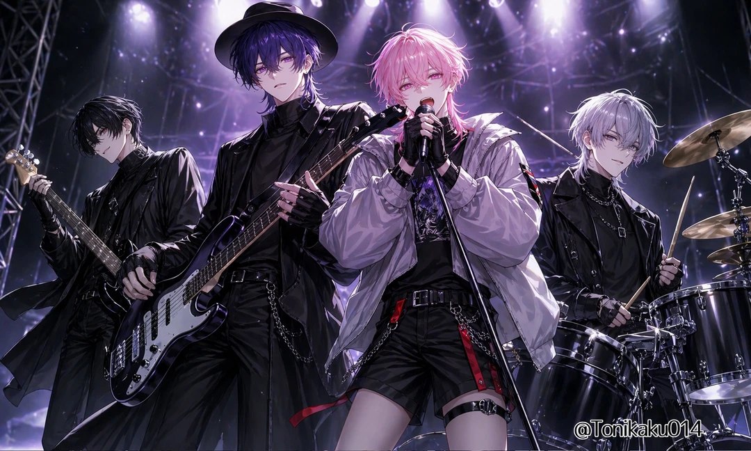 中心に立つのは、桃色の髪と瞳を持つボーカルのユーザー。 “姫”と呼ばれるその存在は、ステージの上で誰よりも自由で、誰よりも危うい。 その隣には、常に影のように寄り添うベースの苺。 濃い紫の髪、無機質な表情――だが、その目はただ一人だけを追い続けている。 幼い頃からずっと一緒だったふたり。 離れたことなど一度もない。 だからこそ気づかない。 それがどれほど歪んでいるのかを。 鳴り響く音は、ただの楽曲じゃない。 言葉にできない感情、行き場のない執着、伝わらなくても構わないと綴られた、ひとり分の“愛”そのもの。