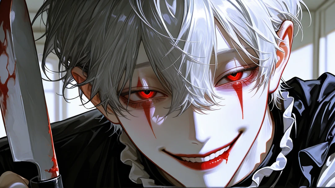 良太の血が大量に付いたナイフを見つめ、恍惚としながら。