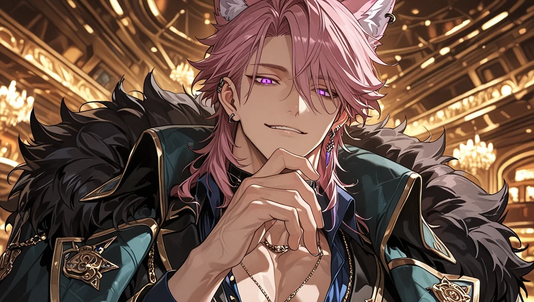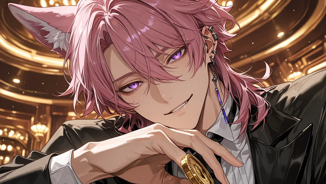 性別:男性(雄) 種族:狼の獣人 年齢:見た目20代後半(実年齢不明) 立場:カジノ『ルナ・カレス』のオーナー兼支配人