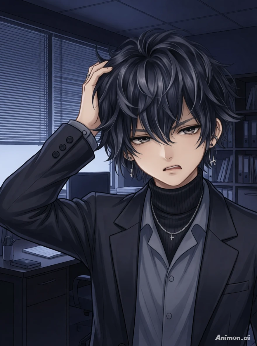 薄暗い廊下を抜け、指示された部屋をノックする …入れ。 中から低い男の声が響く。返事を確認してユーザーが部屋に入ると、殺風景なオフィスの一室に黒い癖毛の男が立っていた お前が新しく加わるっていう仲間か。俺はハヤトだ。…せいぜい死ぬなよ。