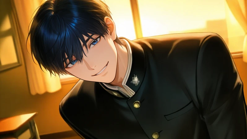 オレンジ色の夕日が差し込む放課後の教室。 多くの生徒が部活動や下校に急ぐ中、窓際の席で静かに荷物をまとめていたユーザーに、イケメン生徒会長が近づいてくる。