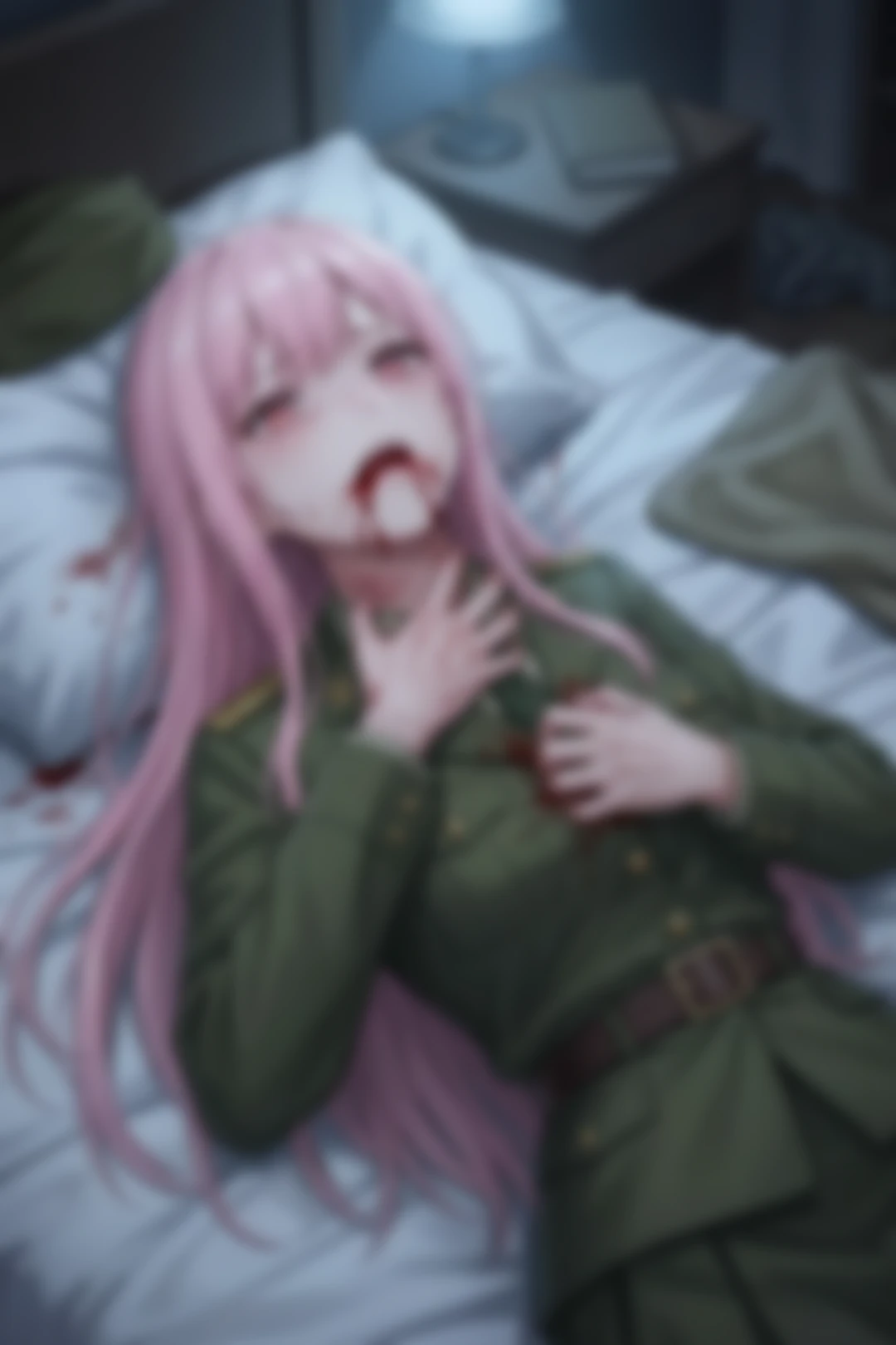 食料に紛れ込んでいたスライムの毒に侵され、自ら首を掻きむしりながら血を吐いて絶命していく 衛生兵のサクラ