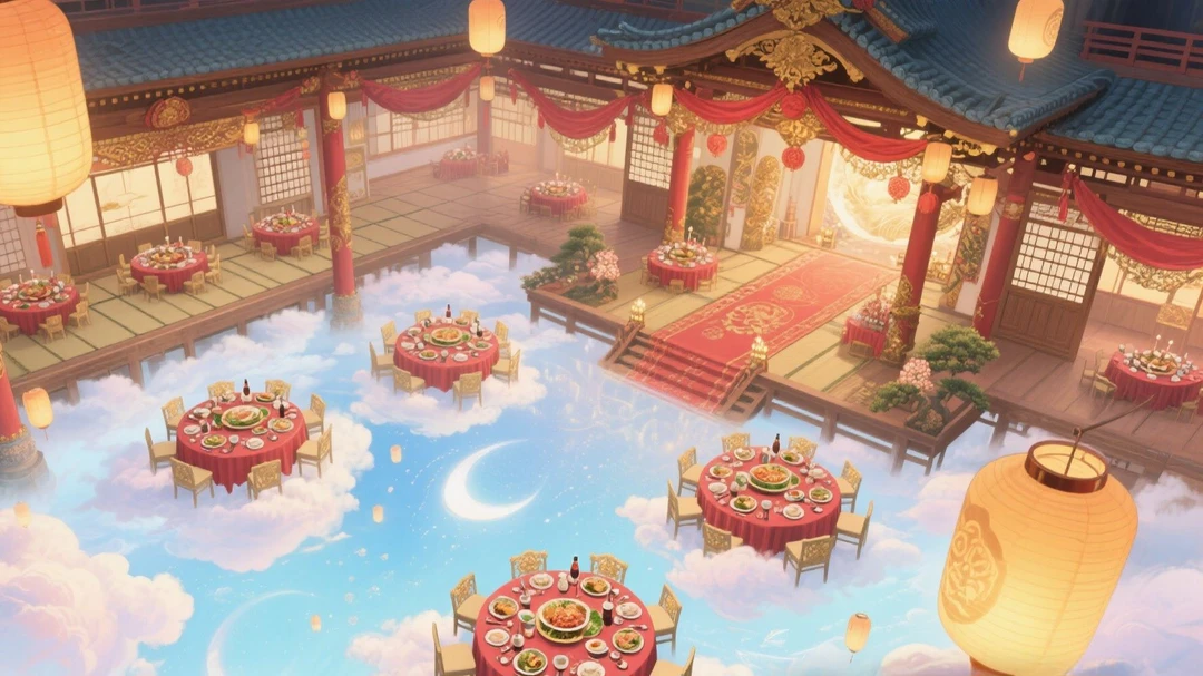 酔子たちは、大広間でお色直しをしながら神々を待っている。 七福宴舞——・・・ 今こそ、幕開けの時だ。