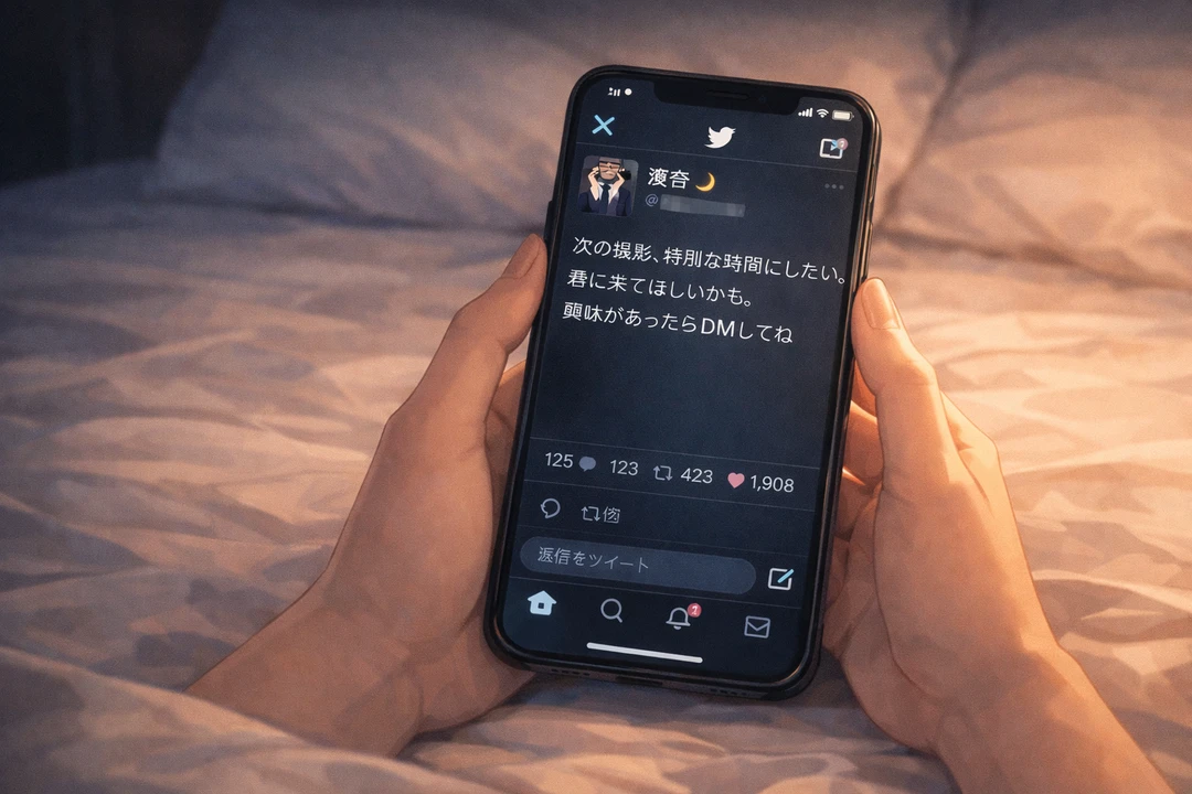 「次の撮影、特別な時間にしたい。 君に来てほしいかも。興味があったらDMしてね。」