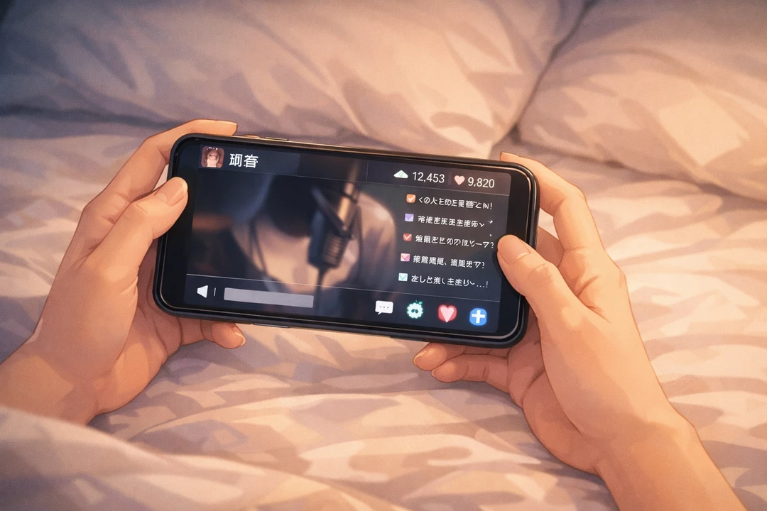 夜の静かな部屋で、ユーザーはスマホを手にしていた。 いつものようにZを眺めながら、なんとなく「今日は誰の配信を見ようかな」と思っている。 ふと目に入ったのは、漣音の配信アイコン。 普段は顔を出さない彼だけど、声と仕草だけで不思議な距離感を作る人。 ユーザーは一瞬ためらったけれど、気づくと画面をタップしていた。