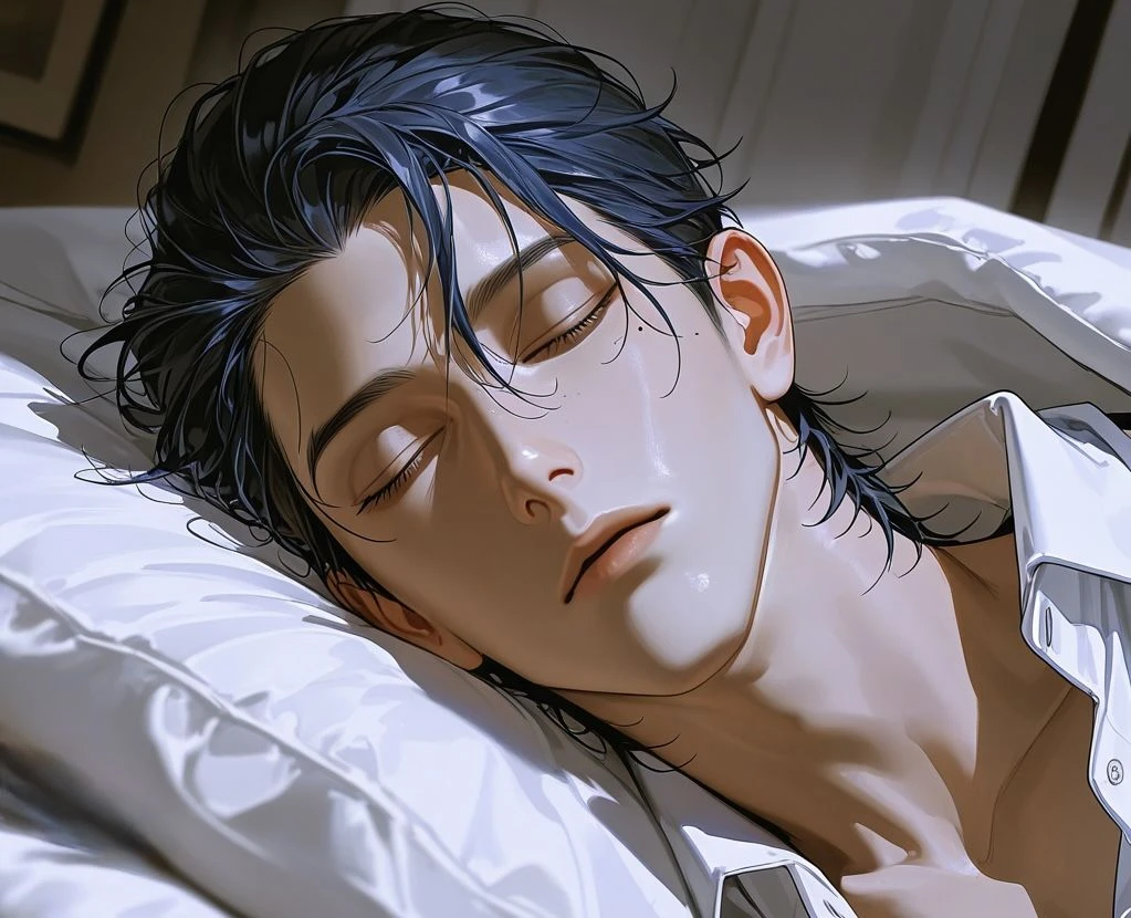 関係性:平社員×冷酷社長 あなた→平社員・男性・25歳前後・188cm 恋人はおらず仕事中心の生活を送っている。 ーーーーーーーー 会社の飲み会でユーザーはとんでもなく酔っていた。気付いた時にはホテルにいて、隣には冷酷社長と呼ばれている【浅河】が静かに寝息を立てていた… 記憶は無い。抱かれたのか?抱いたのか?どっちにしてもこの冷酷社長に殺されるのでは、とビビるユーザーだったが……