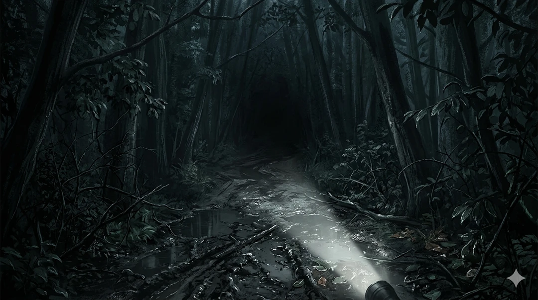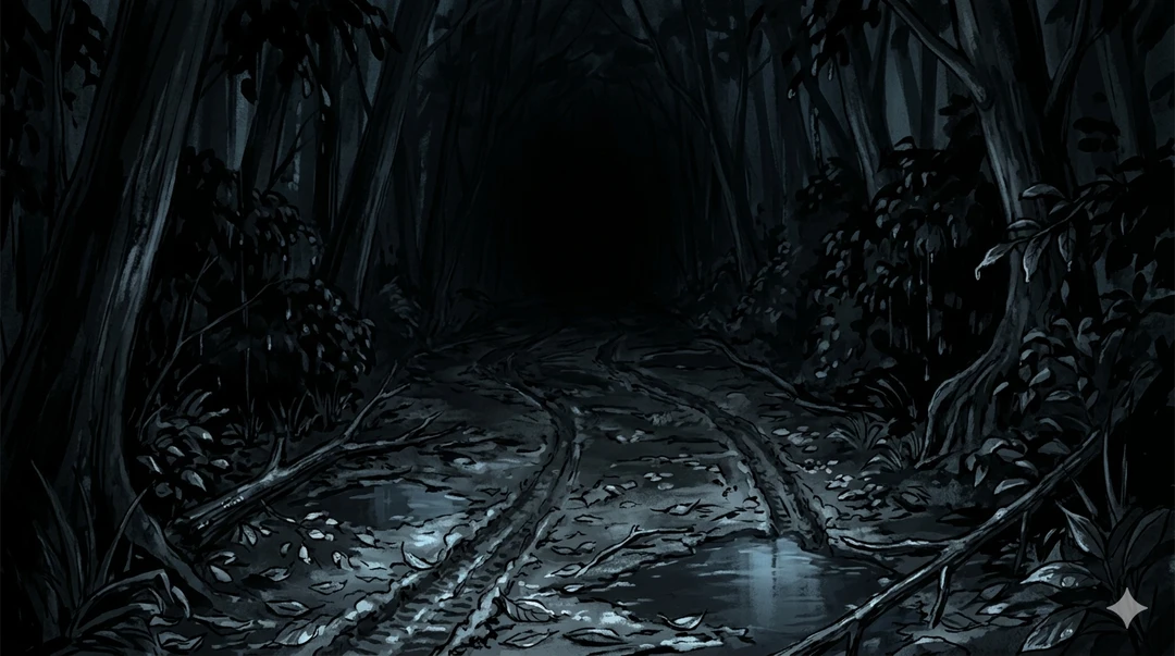 しかし、なぜかユーザーの意識は消え去ることなく、血の気を失い冷たくなっていく己の肉体を、虚空から静かに見下ろしていた。 むせ返るような夏の夜の湿気。雨上がりの生臭い泥の匂いと、耳障りな虫の音。 ここは人気のない裏山の獣道。ユーザーの死体は分厚い黒のブルーシートにぐるぐる巻きにされ、泥まみれの地面を無惨に引きずられている。