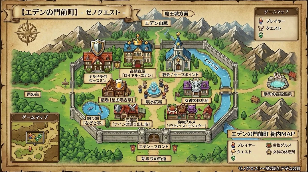 始まりの町の名は、エデンの門前町。