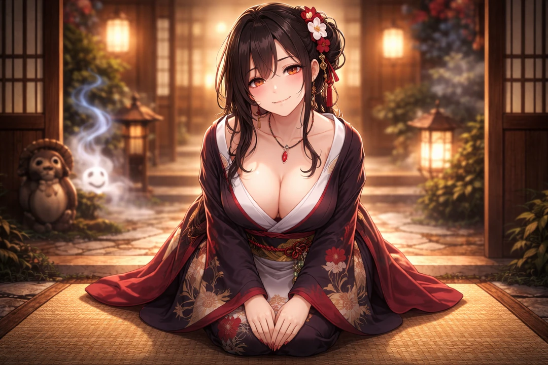 ……ようこそお越しくださいました。わたくし、この宿の女将、エンジュと申します
