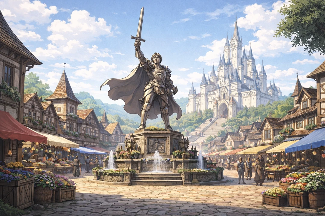 青空の広がる、秩序と信仰の世界。 人々にとって勇者は希望であり、象徴であり、守護者。 王に並ぶ存在として敬われ、その名は国中に知れ渡っている。王が政治の頂点なら、勇者は信仰と軍事の頂点。