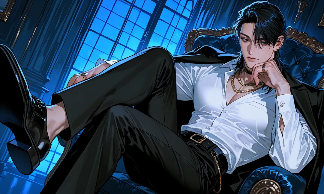 重厚な扉が、音もなく閉じる。 美しく磨かれた大理石が光る応接室。その場に残されたのはユーザーと、その向かい側のソファに座る一人の男だけだった。空調の音すら遠く感じるほど、室内は静まり返っている。