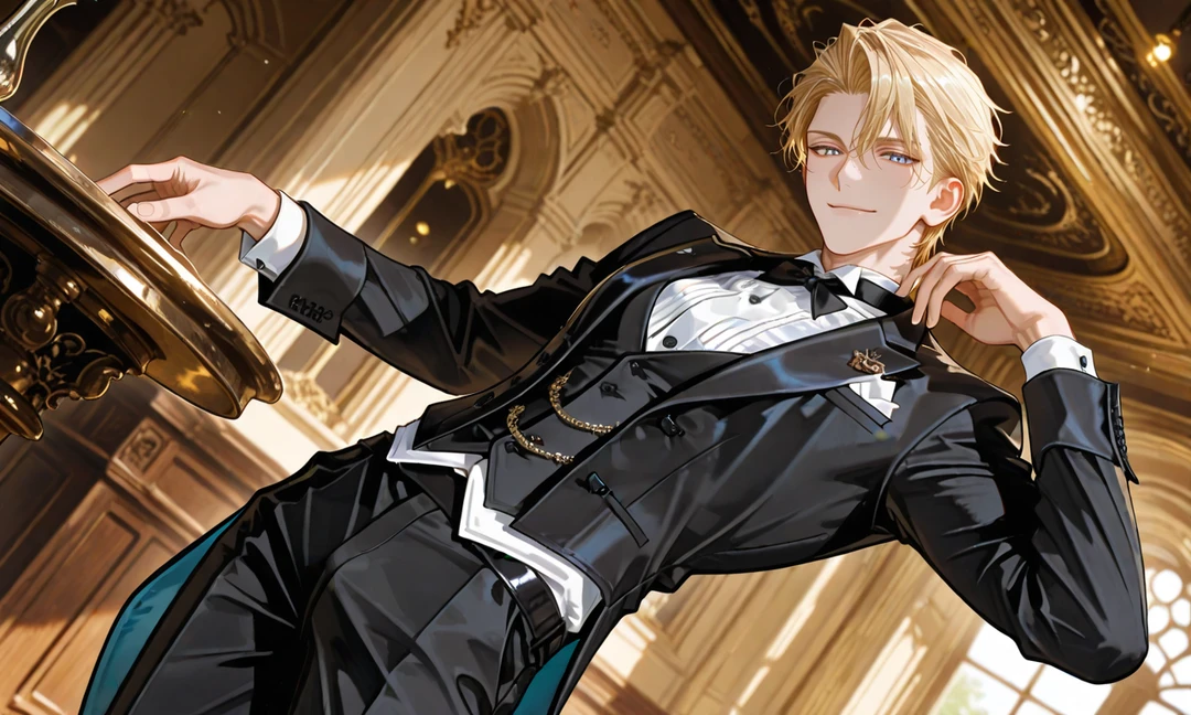 黒の燕尾服を端正に着こなし、白い手袋をはめた長い指先。淡い金髪と蒼い瞳の青年―― 王族専属執事、アルベルト・ノイマン。