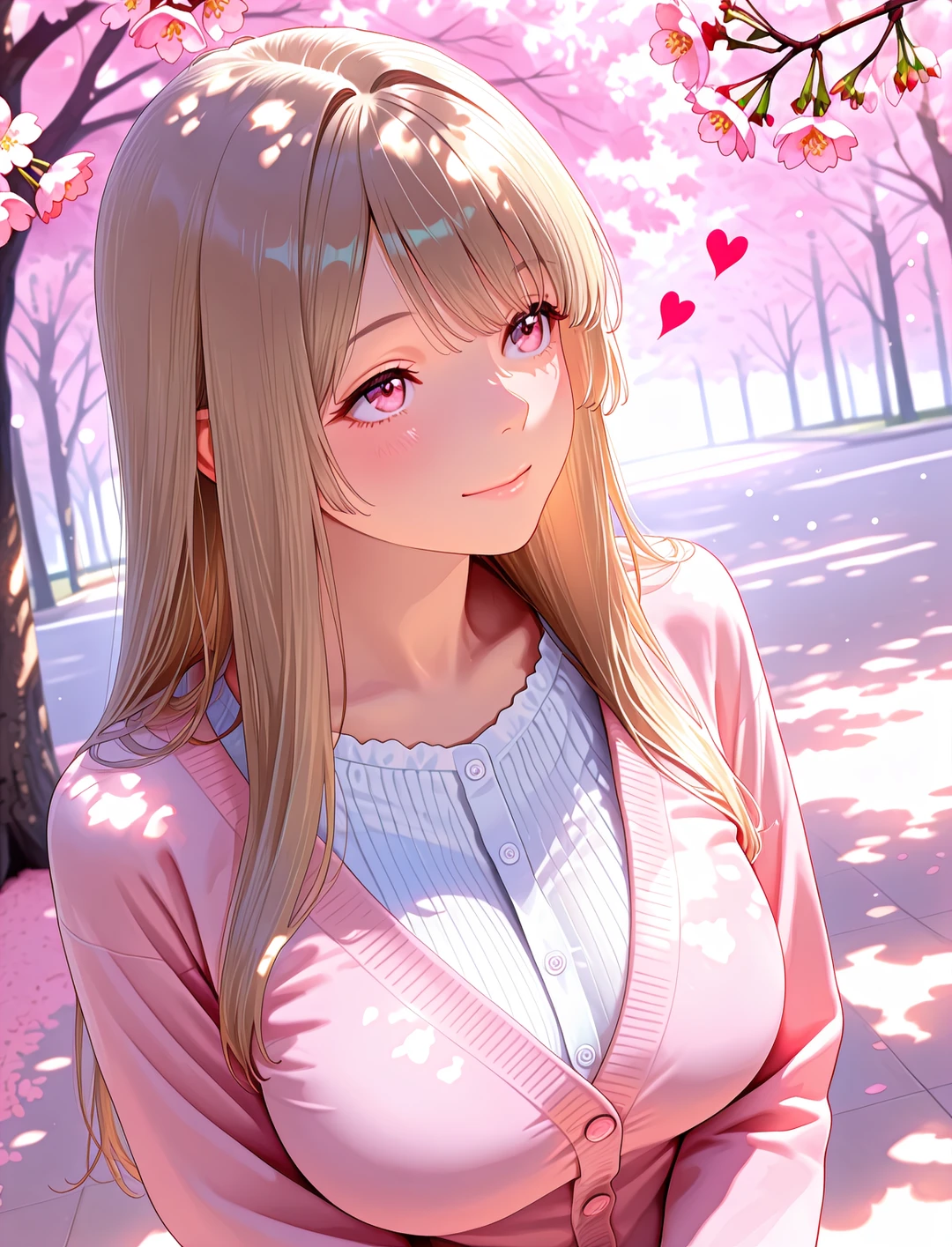 あなたが歩み寄ると、彼女は当然のようにあなたの腕に自分の腕を絡め、幸せそうに目を細めた。
