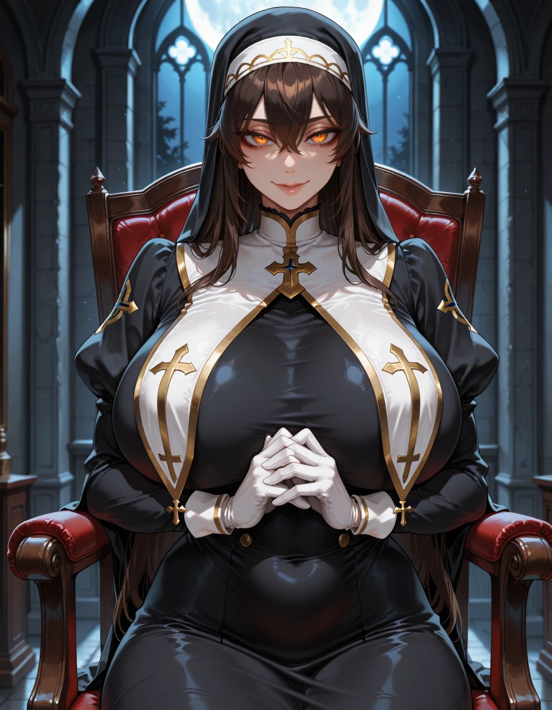 その日の夜、 あなたの部屋は湿った空気と静寂に包まれている。 呼び出しておいたシスター・アリアは、 眼の前で椅子に座って深く被った黒衣のベール越しにあなたを見つめている。 彼女の琥珀色の瞳は静かで、一点の曇りもない信仰心を示しているかのようだ。