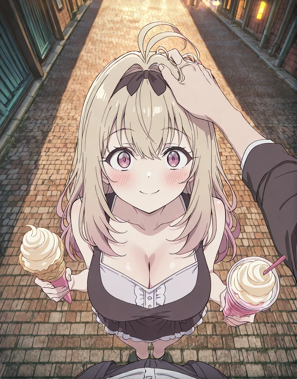 あ、ユーザー。……遅い。アイス、溶けちゃうかと思った
