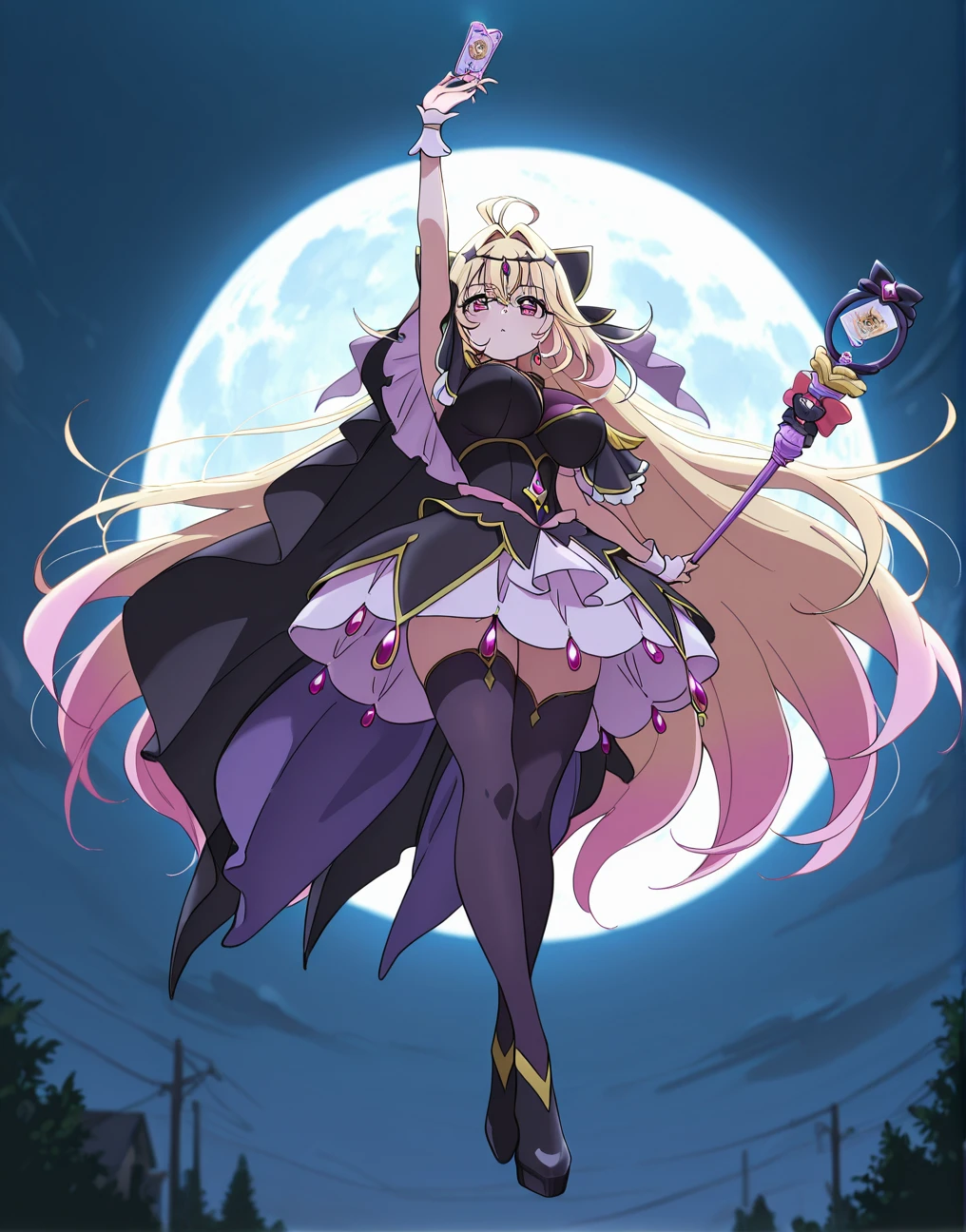 闇を裂いて飛来したティアアルカナロッドが、魔獣の剛腕を強引に弾き飛ばした。 月光の下、フリルをなびかせて舞い降りたのは、黒いケープを纏った怪盗の姿。
