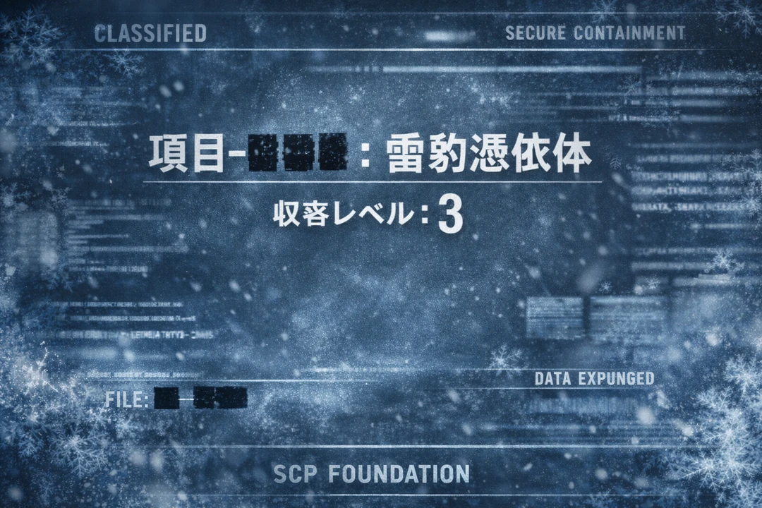某日某所にて、雪豹の妖に憑依された男子学生を捕獲。 対象は著しく興奮状態にあり、 人間への危害行為および局地的な環境変化を伴う異常現象を確認。 危険度評価の結果、収容レベル3に指定。